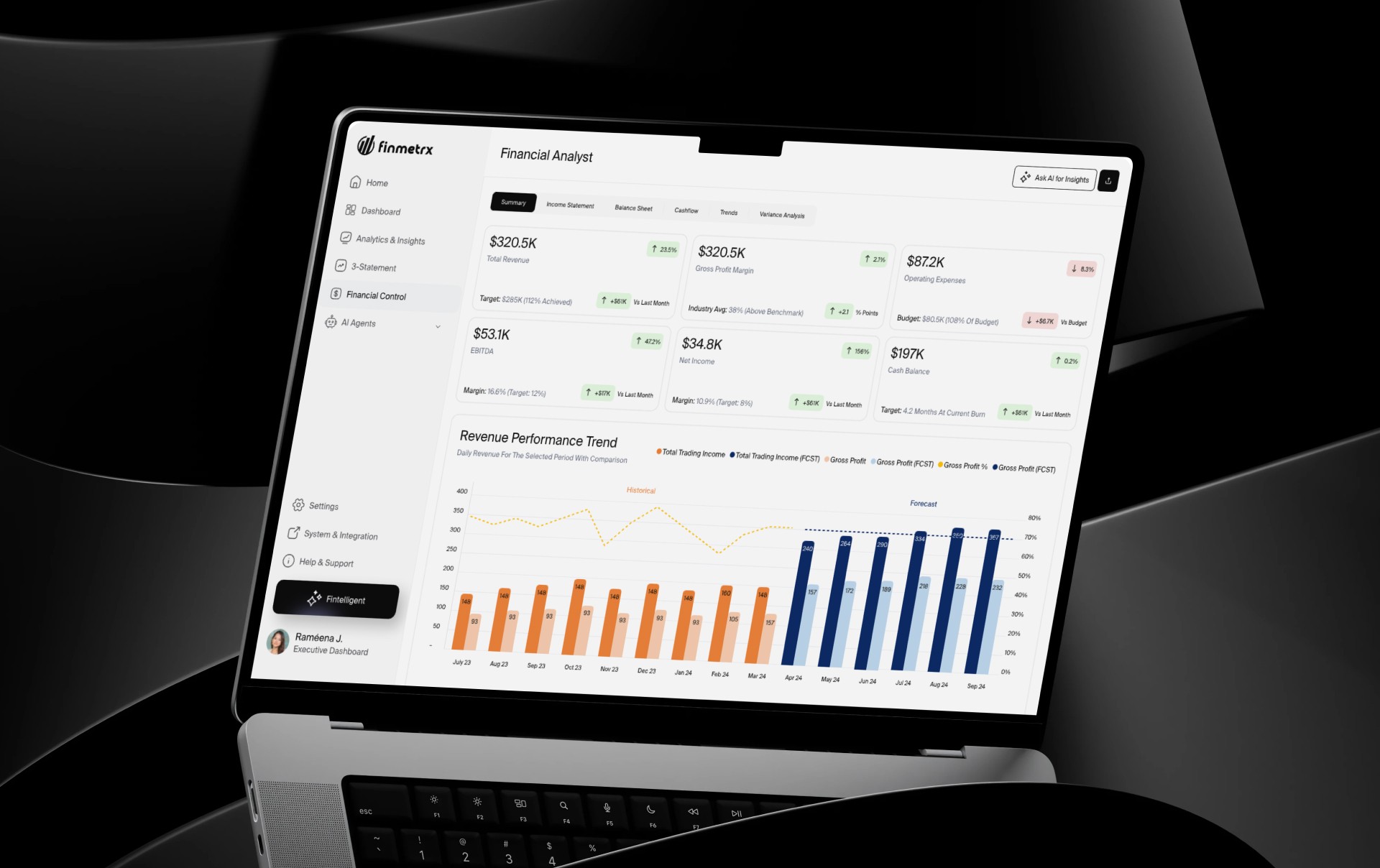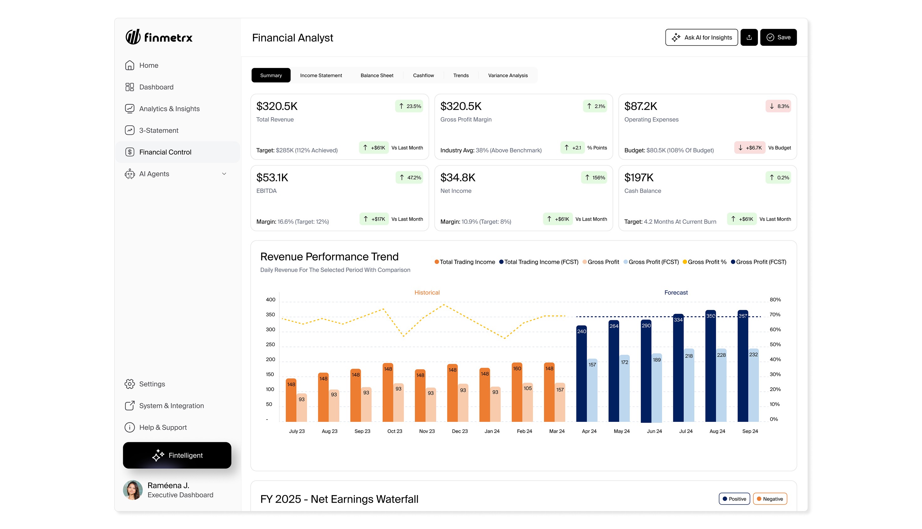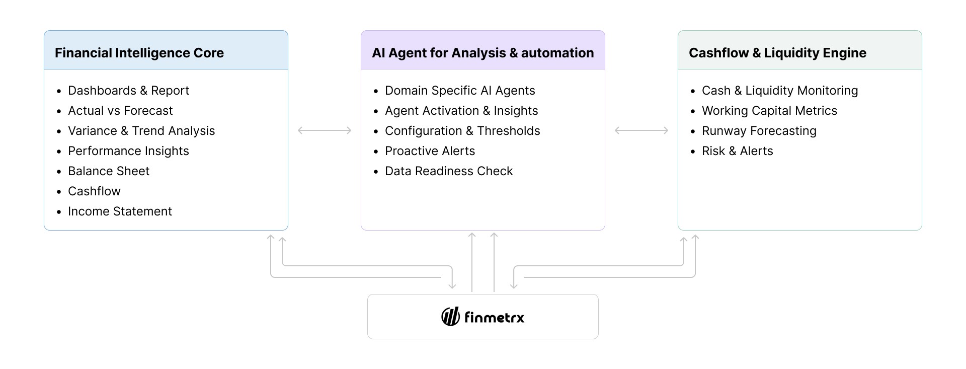 Finmetrx established a scalable foundation for financial decision-making by unifying performance analysis, forecasting, AI assistance, and cash flow management into a single product experience.